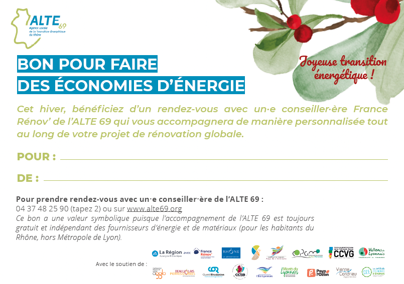 Ce bon a une valeur symbolique puisque l'accompagnement de l'ALTE 69 (pour les habitants du Rhône hors Métropole de Lyon) est toujours gratuit et indépendant des fournisseurs d'énergie et de matériaux. Ce bon a simplement pour objectif de faire connaitre le service, soutenu par la Région, le Département et toutes les collectivités du Rhône.