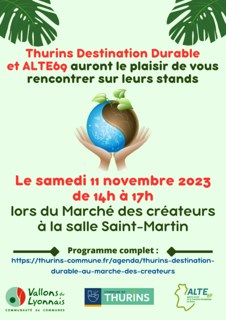 Des conseillers et conseillères de l'ALTE 69 seront aux côtés de Thurins Destination Durable pour animer un stand autour de deux thématiques : "Inventons nos vies bas carbone" et "La mobilité douce et les solutions existantes sur la CCVL"